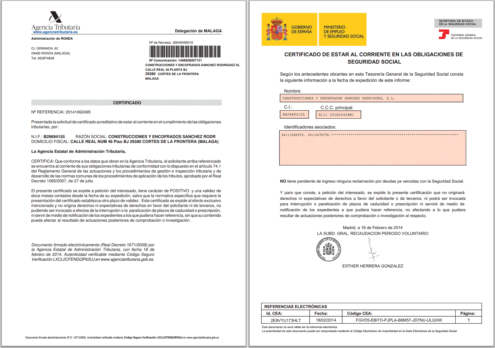 SANRO, cumpliendo con sus obligaciones como contratista, se encuentra al corriente de sus obligaciones en los pagos con la Seguridad Social y con la Agencia Española de Administración Tributaria.